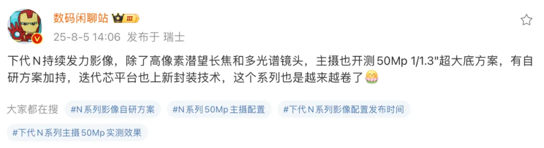 根据博主@数码闲聊站 近日爆料暗示,华为nova15系列持续发力影像,除了采用高像素潜望长焦镜头以及多光谱镜头以外,主摄也会有较大升级,目前正在开测5000万像素1/1.3英寸超大底方案,有自研方案加持,迭代芯片平台也会用上新的封装技术。
