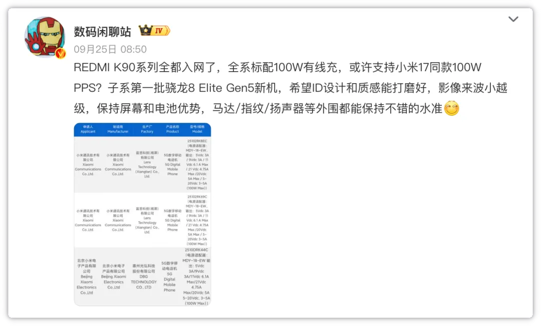 续航方面,红米K90将搭载一块7100mAh小米“金沙江”大电池,并且支持100W澎湃秒充和旁路供电技术,配合骁龙8至尊版芯片的能耗优势,新机续航表现有望刷新红米K系列纪录。