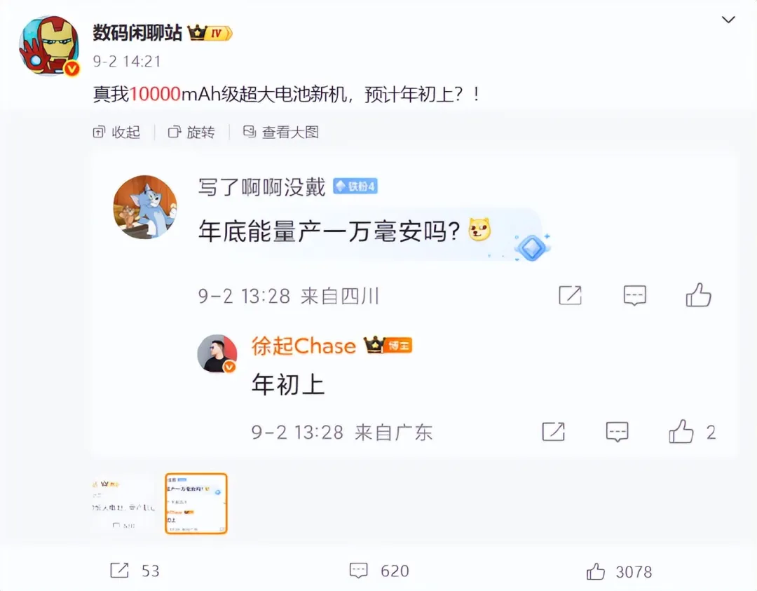 早之前博主数码闲聊站就爆料,荣耀会有一款10000mAh大电池手机将在明年上市,目前综合配置也很明确,搭载天玑8500处理器+LPDDR5X+UFS4.0,内置10000mAh电池+80w有线充电+反向充电。