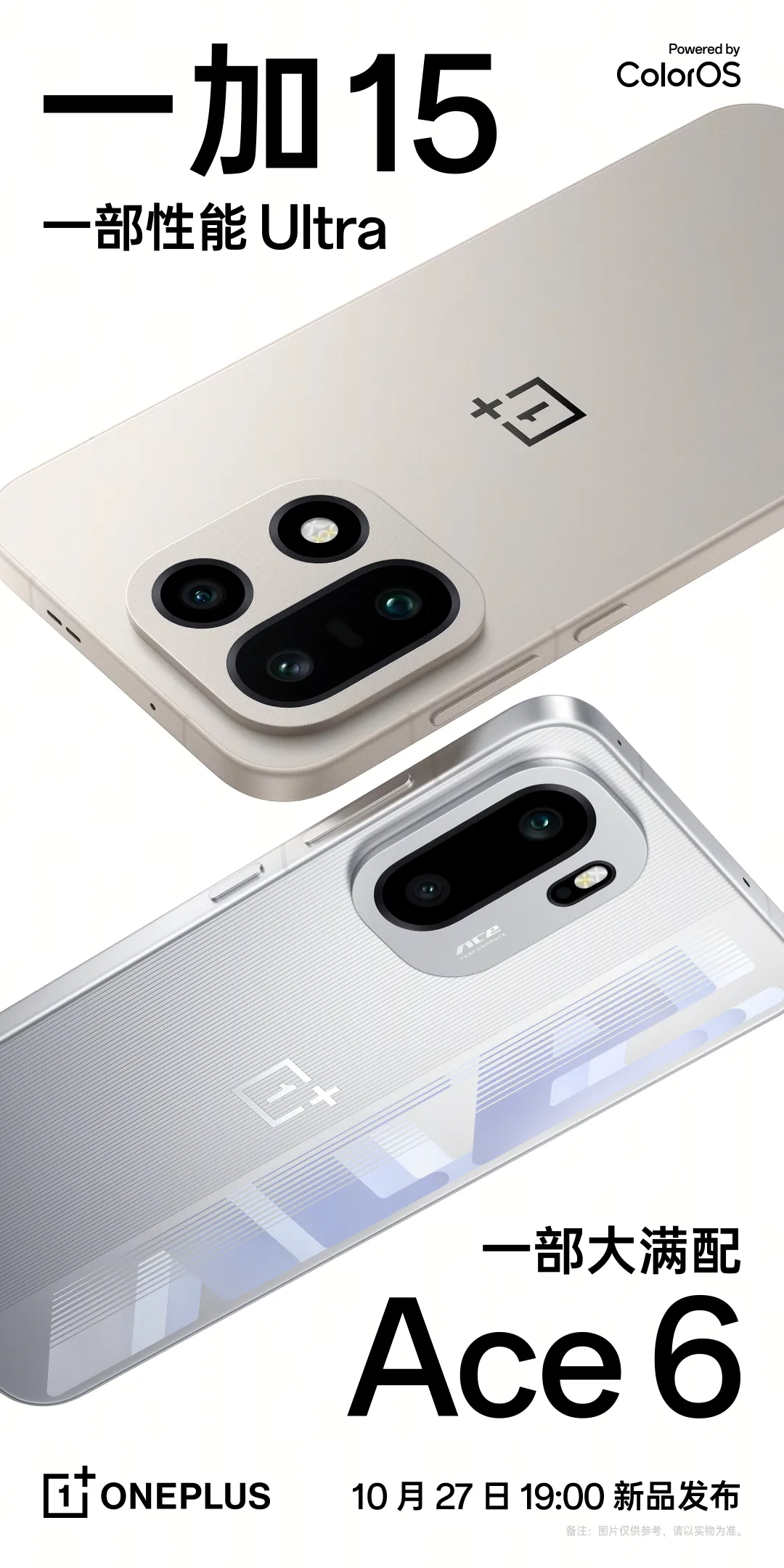 在今年的旗舰大战里,一加显然不打算低调。官方已正式宣布,「一加15」与「一加Ace6」将于10月27日19:00同台登场,按照官方定义,这将是一场“性能与美学的双巅峰秀”。